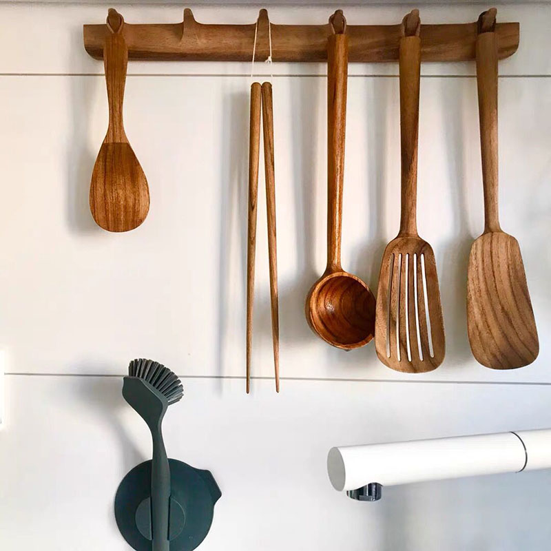 Imported from Thailand chabatree teak large soup spoon Japanese home kitchen solid wood long handle porridge spoon unpainted
