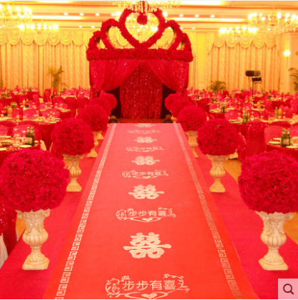 Wedding celebration red carpet One-time opening celebration Wedding supplies Living room floor step by step with joy printed red carpet
