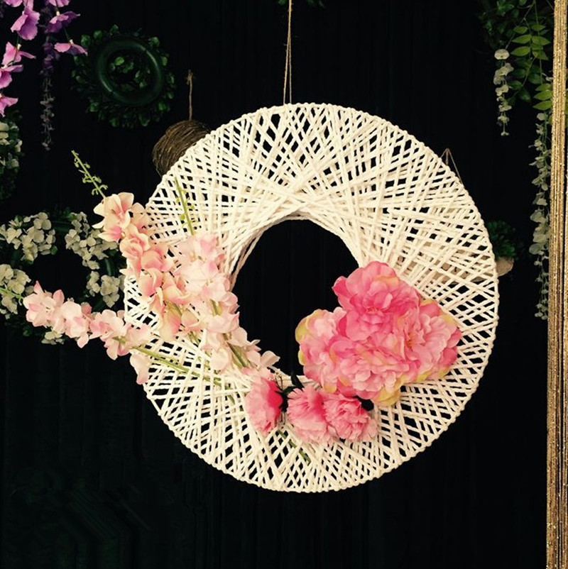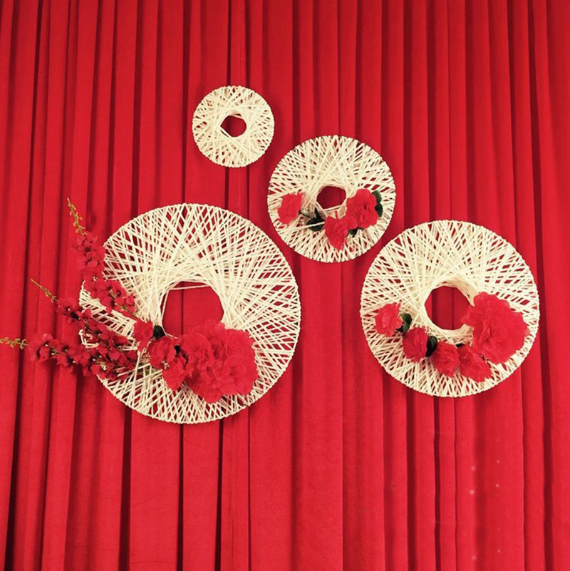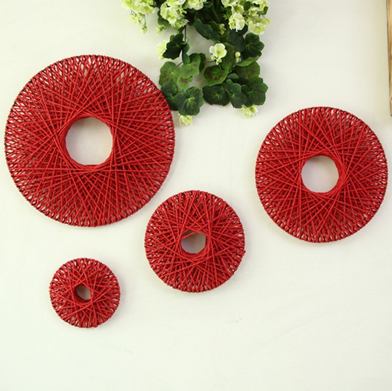 4 Pieces Flying Saucer Disc Stage Background Decoration Wedding Arrangement Props Wall-mounted Hemp Rope Ring Creative Beauty Chen