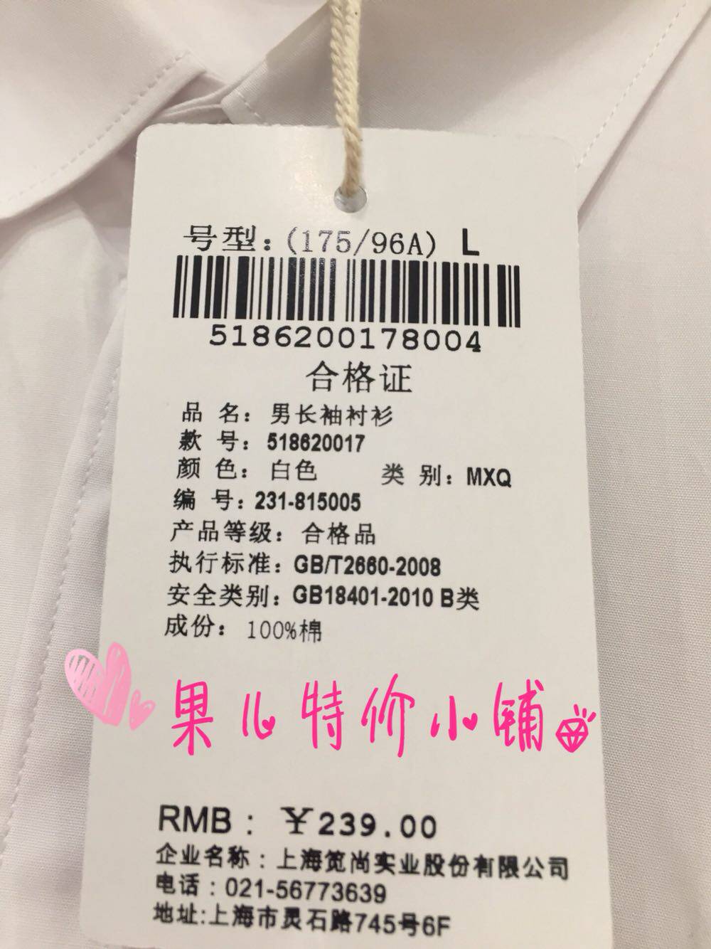 MJ TOPFEELING counter men's long-sleeved shirt 518620017 (new) white