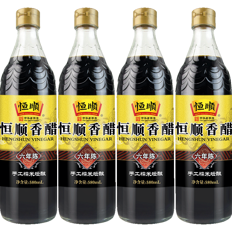 Hengshun balsamic vinegar Zhenjiang specialty six years old 580ml * 4 bottles pure grain brewing aged vinegar balsamic vinegar dipped in seasoning vinegar