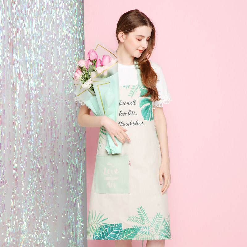 Strawberry Bantang Original Nordic Leaf Apron Fresh Thick Pound Cotton Linen Couples Waterproof Protective Housekeeping Coverall
