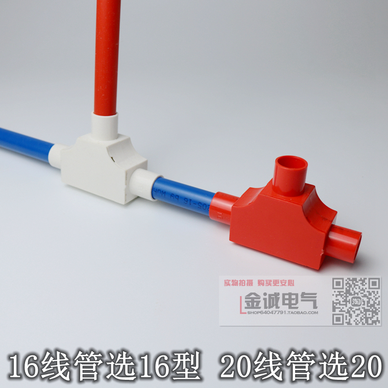 PVC line pipe accessories surface-mounted 16 20 with cover tee box square three-fork commander combined red, blue and white line pipe square tee