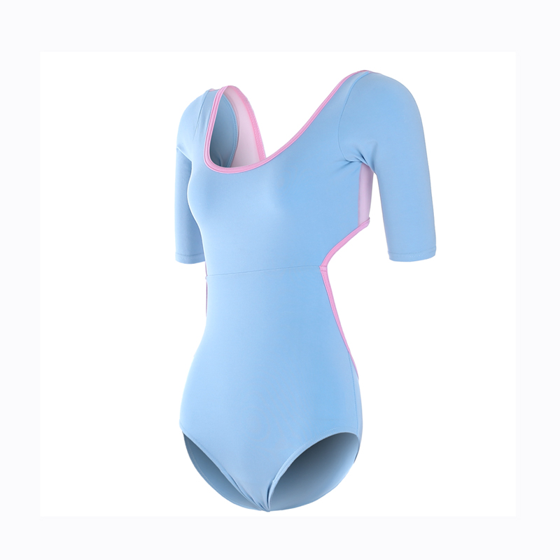 Gymnastics Suit Women Ballet Dancer Dance Short Sleeve Mesh Yarn Collision Color Splicing Live-up Body Suit High Hip Aerial Yoga