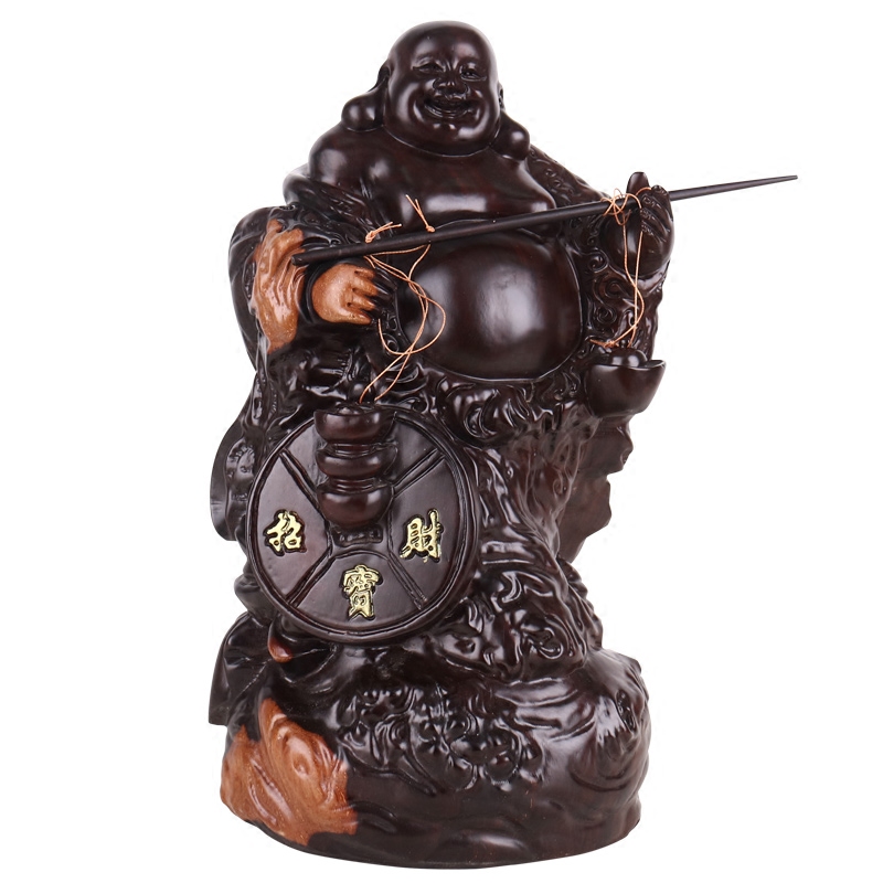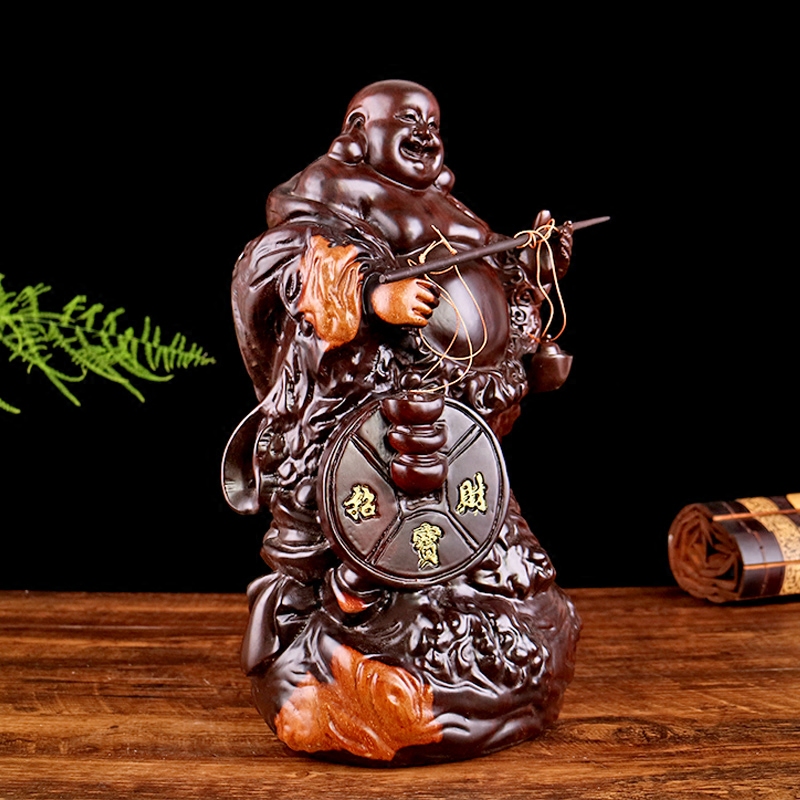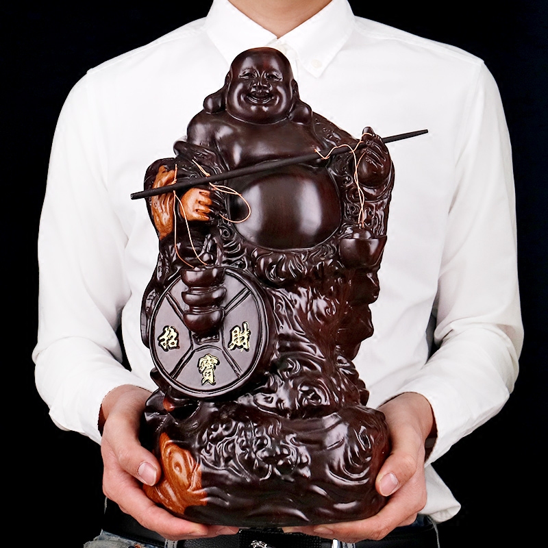 Ebony wood carving belly Maitreya Buddha ornaments worship home living room decorations Solid wood carving laughing Buddha craft gift ornaments