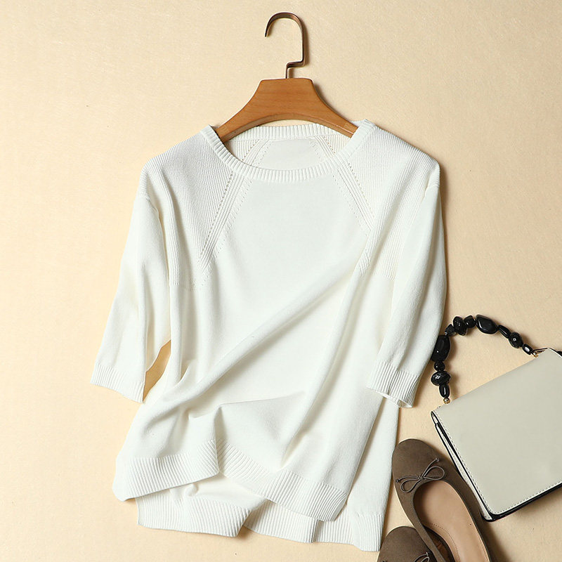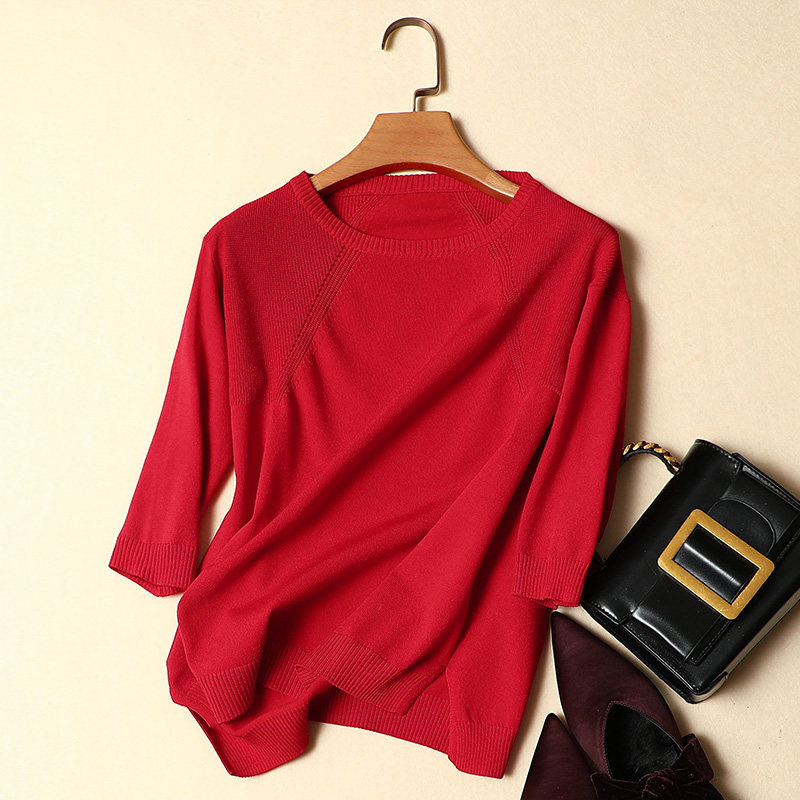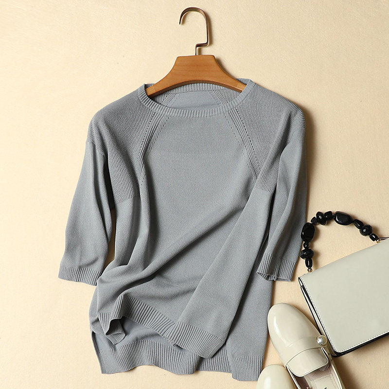 Ice silk sweater women pullover 2022 autumn new women's Korean loose top bottoming shirt women 3/4 sleeve trendy