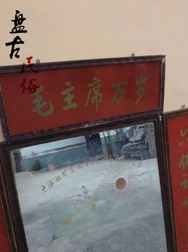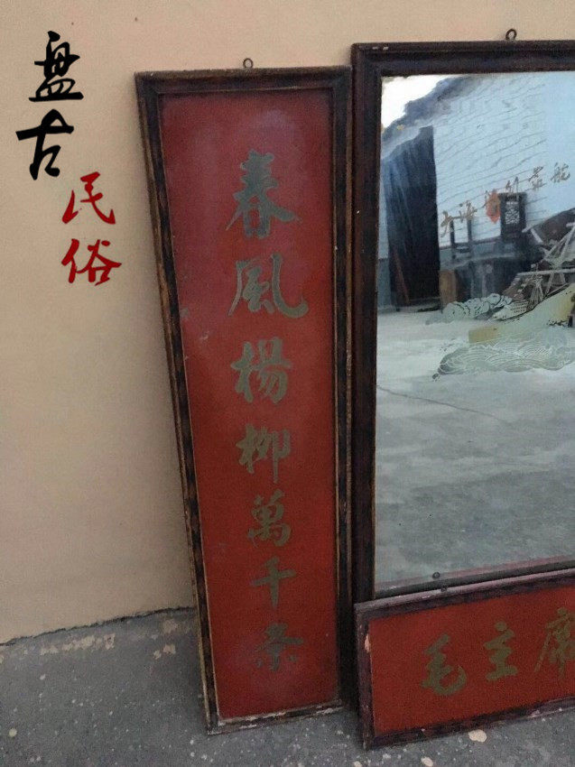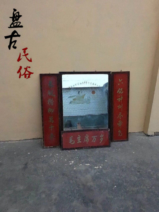 Cultural Revolution old hanging mirror folk custom old object mirror in the hall mirror red collection nostalgic retro mirror props ornaments