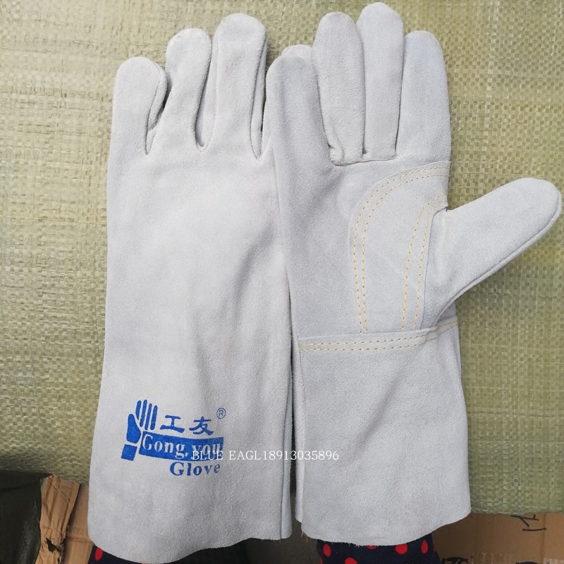Workers Electro-Welded Gloves Anti-Burn And High Temperature Resistant Hand Leather Pure Cow Leather Welt Welding Work Gloves Fire Wire Lengthened Welding Gloves