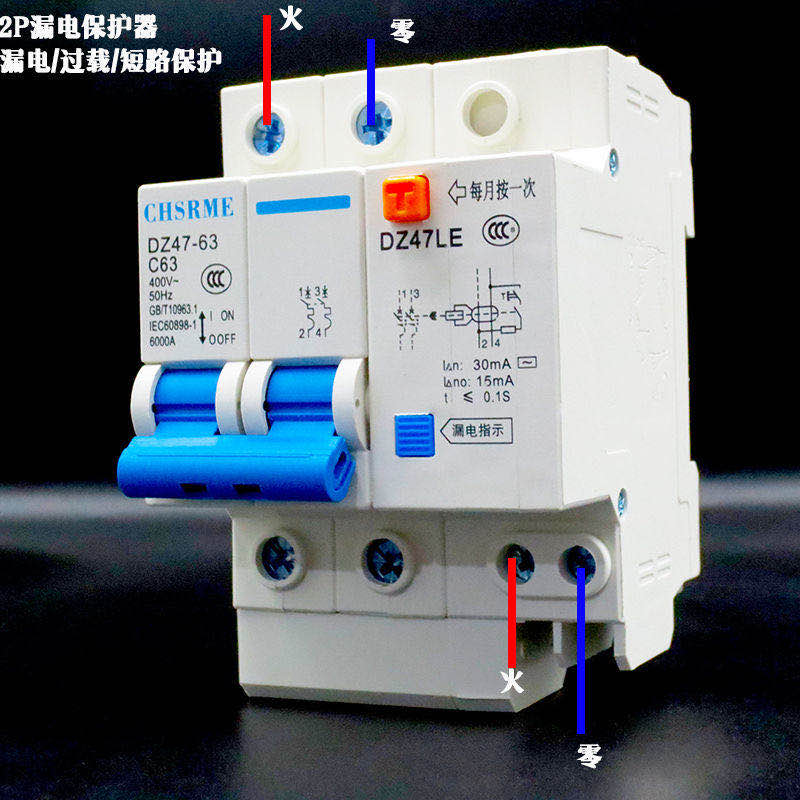 2p air switch 32A63A with leakage protector Total air open circuit breaker Air conditioning household switch Shanghai people