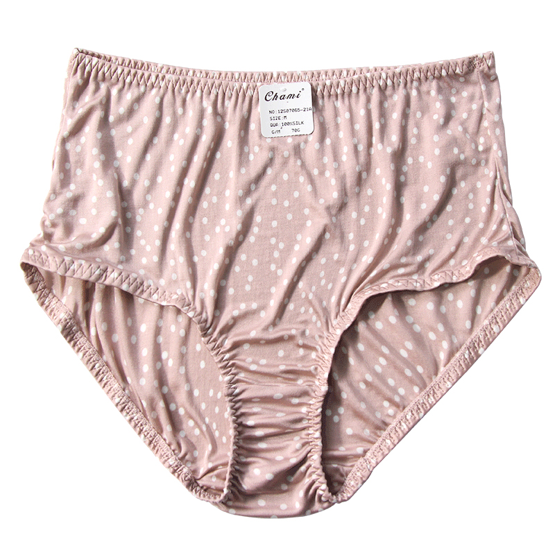 Chami 100% Knitted Silk High Waist Women's Underwear Summer Breathable Quick Dry Wave Point Sexy breifs Female 70g
