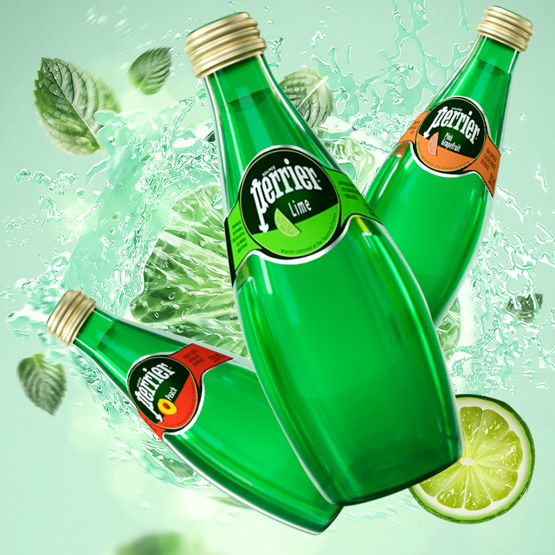 French perrier Paris water lemon flavor 330ml*24 small bottle of whole box of bubble fruit flavor soda water drink