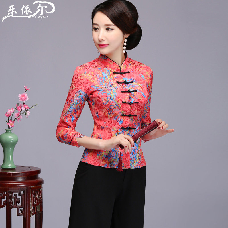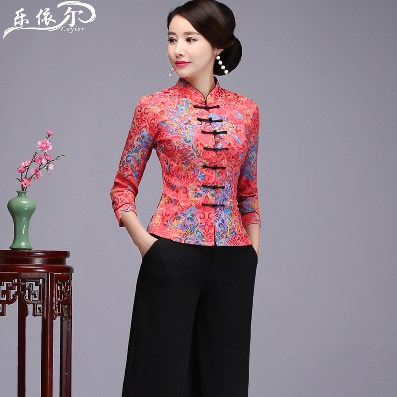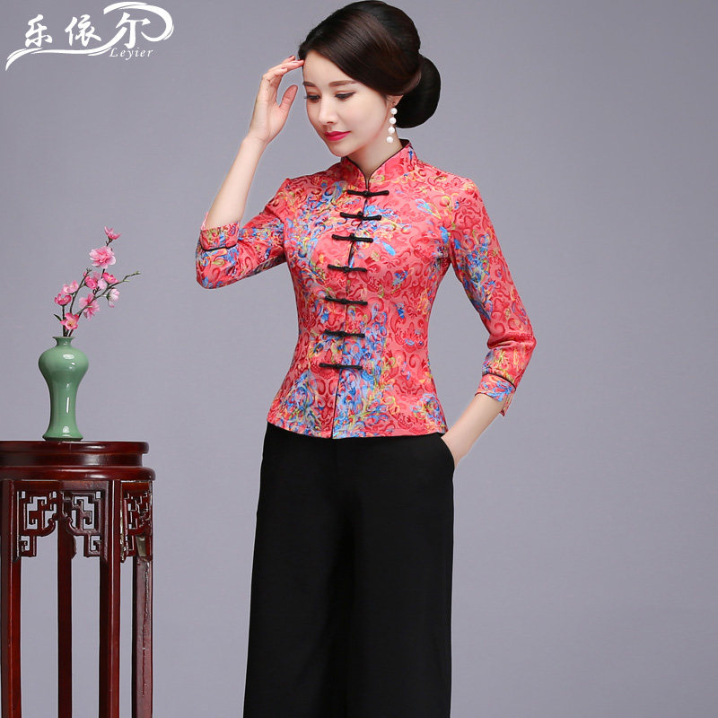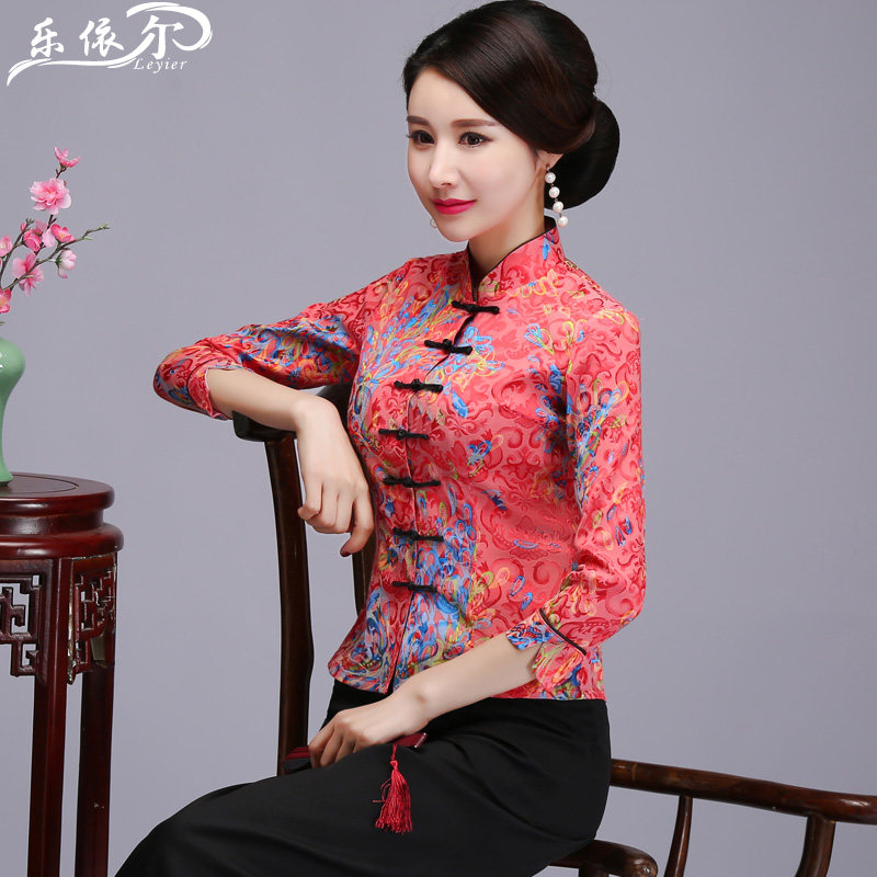 Spring and summer improved Tang suit cheongsam top short section Chinese retro three-quarter sleeve mother dress wedding cheongsam dress large size