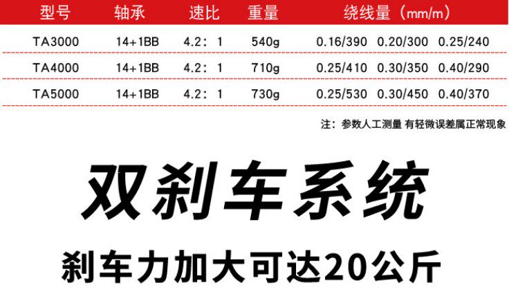 2022 anti-seawater TA series metal 15-axis double brake 20KG Leiqiang Luya boat sea fishing black anchor fish drum
