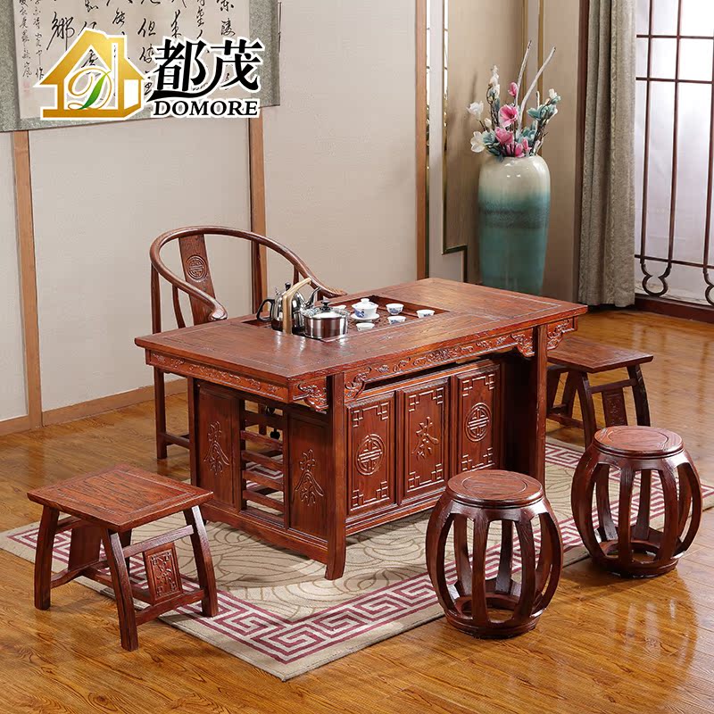 All Lush Furniture Solid Wood Tea Table And Chairs Combine South Elm Wood Flowers Pear Color Chinese Imitation Antique Tea Table Tea Art Kungfu Bubble Tea Table