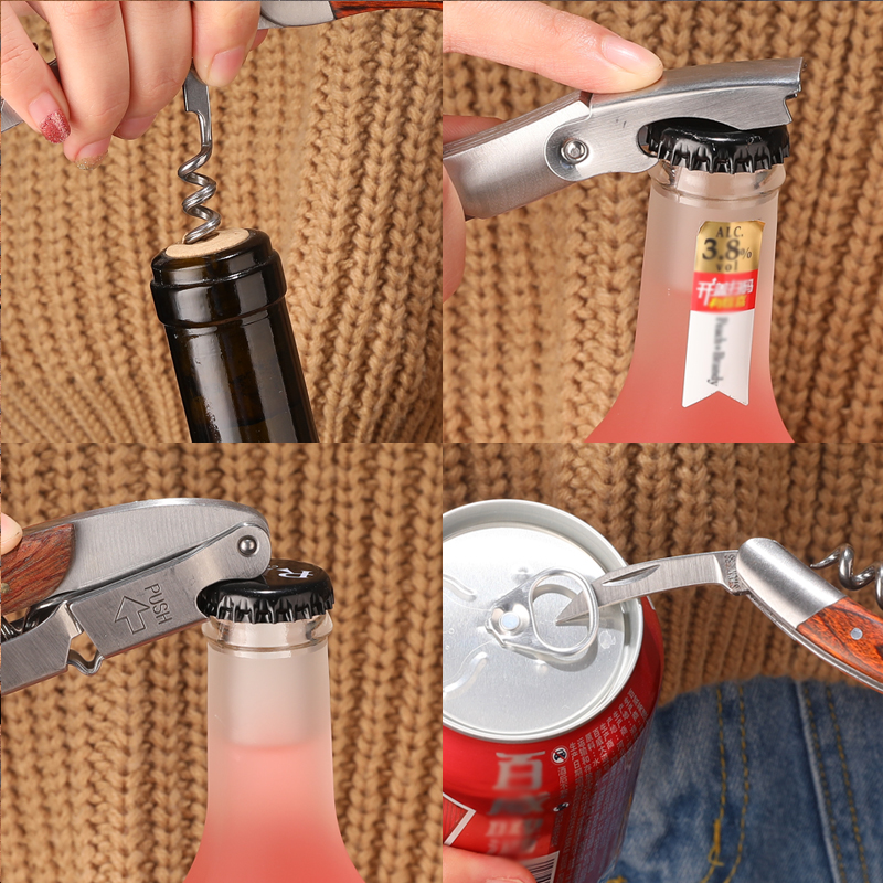 Red wine bottle opener Home Stainless Steel Wine Knife Canned Versatile Personality Creative Beer Opener Solid Wood Seahorse Knife