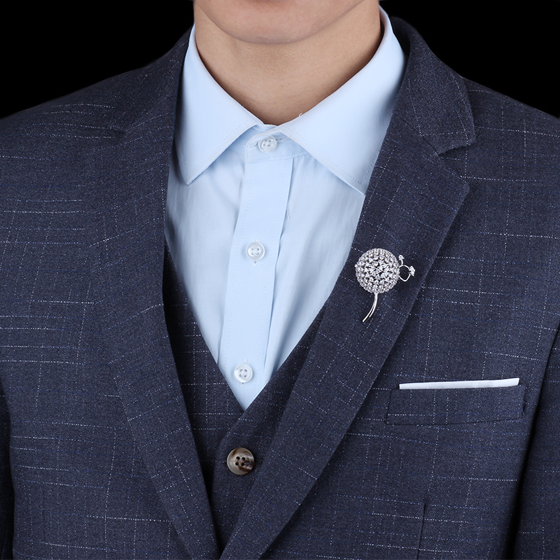 Brooch Men's Republic of Korea Edition fashion Chaumen Creative Suit Chest Flower Students brief Atmospheric personality Water drill Don't take the needle