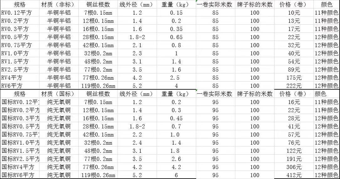 The standard RV wire 0 3 0 5 0 75 square power supply control signal cable single core multi - share copper core electronic wire