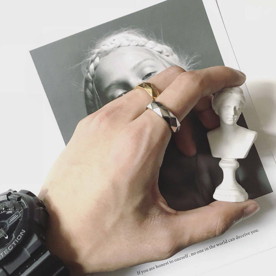 Original simple cool wind design sensitive diamond shaped surface ring titanium steel couple ring ring ring