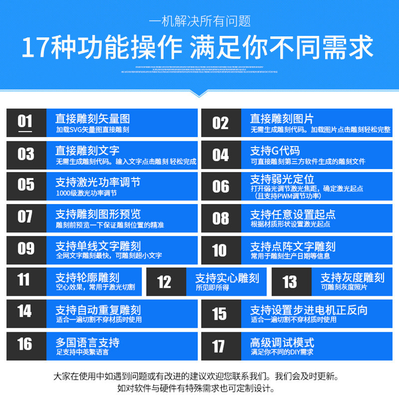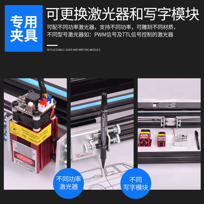 The writing module is equipped with a 500mW laser with a 1000mW laser with a 1600mW laser with a 2500mW laser with a 5500mW laser with a 7000mW laser separate body