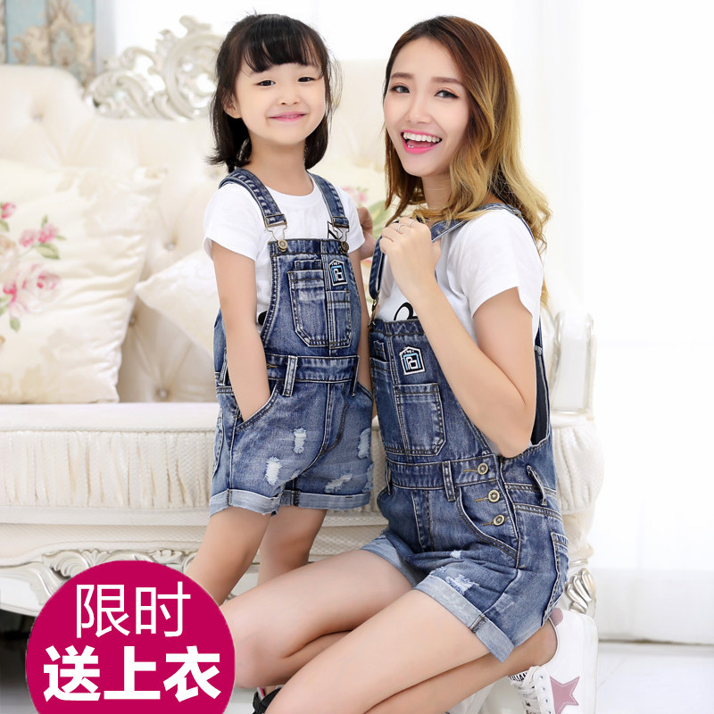 Parent-child summer clothing new trendy mother and daughter clothing boys and girls denim holding baby bag shorts female Korean version of the mother and child