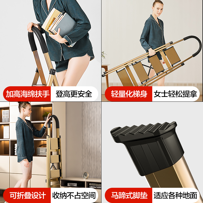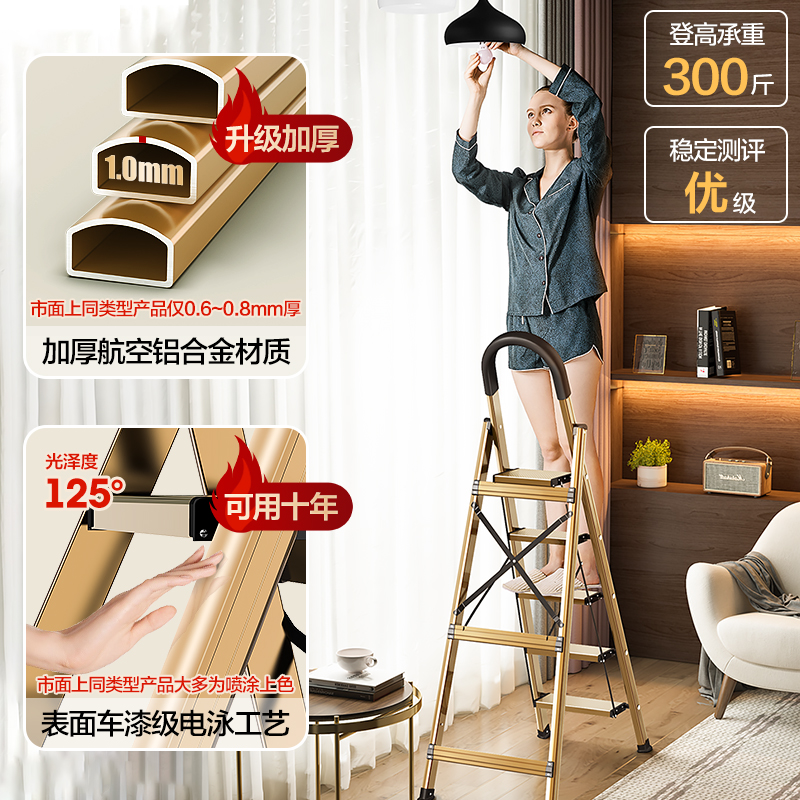 Thickened section Carits gold four-step ladder thickened Titanium Platinum Four Steps Ladder Thickened brown golden Four Ladder Thickened section Four-step Ladder Thickened section Carits Gold 5 Steps thickened Titanium