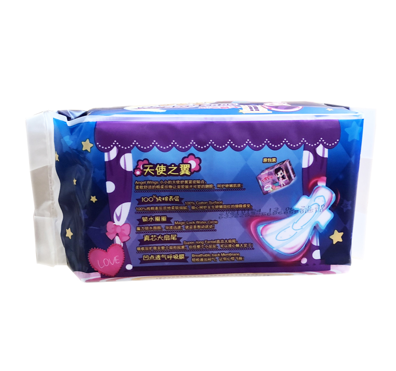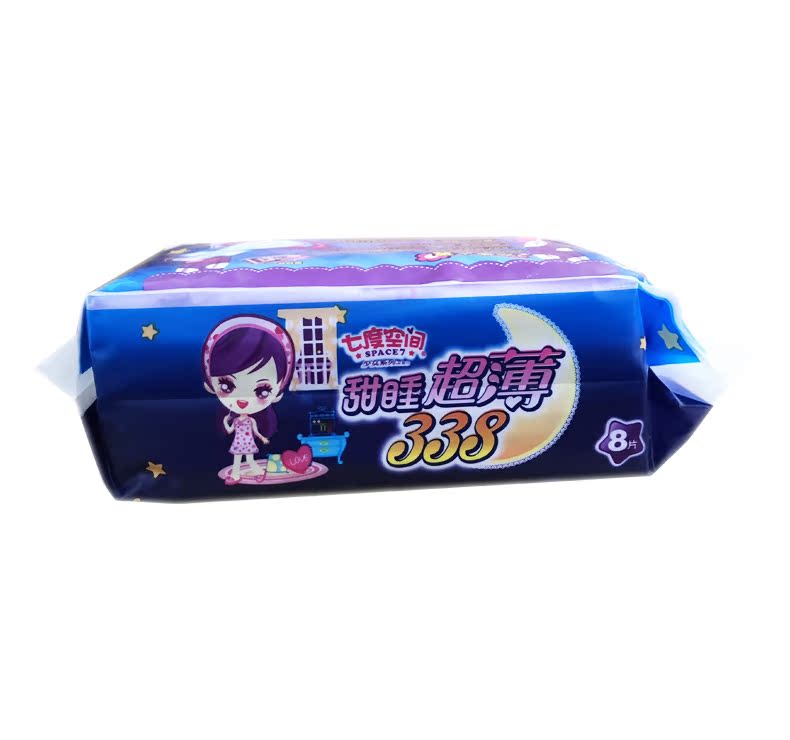 Seven-degree space sweet sleep ultra-thin night with ultra-long 338mm pure cotton 8 pieces QSC6808 sanitary napkin aunt towel 8 packs