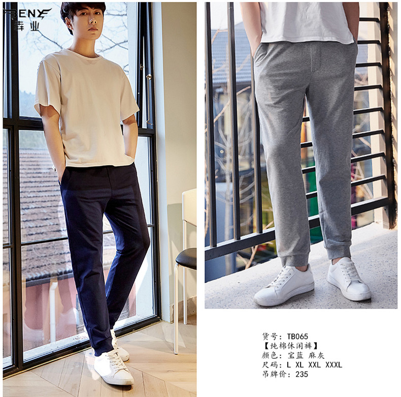 Benye New Products Men's Casual Pants Long Pants Nine Pants Spring and Autumn Pure Cotton Sports Pants TB065