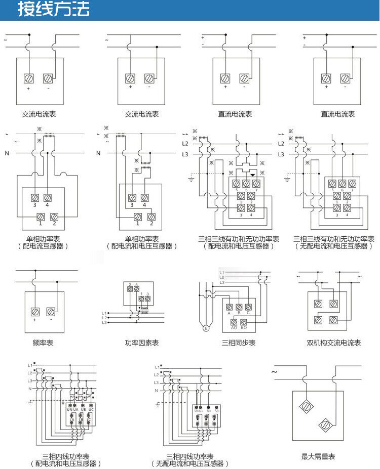 DC Ammeter 10A DC Ammeter 20A DC Ammeter 30A DC Ammeter 50A DC Voltmeter 20V DC Voltmeter 30V DC Voltmeter 50V AC Voltage
