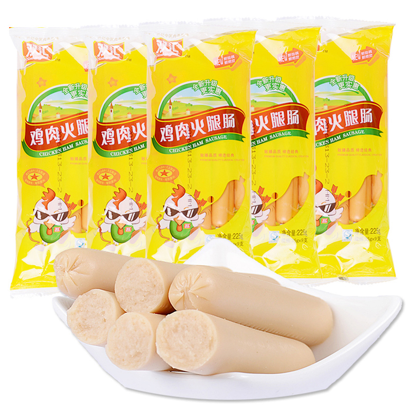 Double Sinks Chicken Sausage 225g * 5 sacks 45 Sausage Chicken Taste Blister partners Fire leggings Intestine Whole Boxes Barbecue Intestines