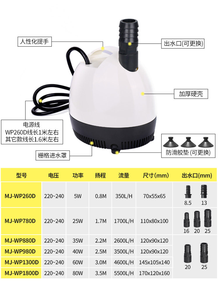 MJ-WP780D MJ-WP780D 25W MJ-WP880D 35W MJ-WP980D 40W MJ-WP1300D 60W MJ -