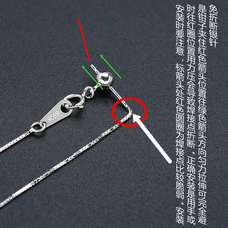 DIY accessories S925 silver box chain with needle wearing bead strings heart chain through hole chain round bead pine stone pearl adjustable