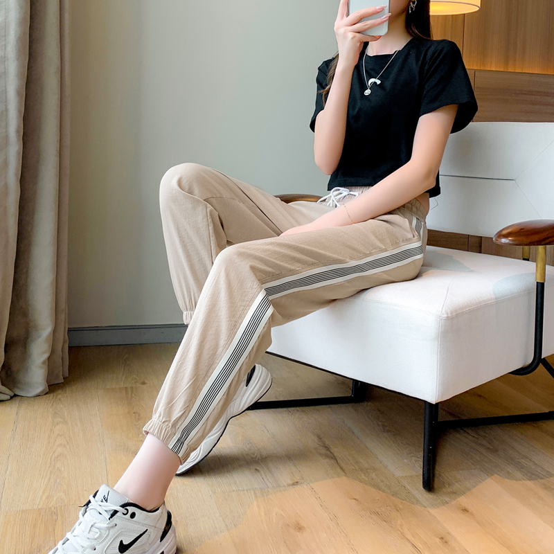Cotton Linen Sports Pants Woman Summer Thin loose casual 90% Pants 2022 New Ice Silk Mosquito-Proof Bunching Pants