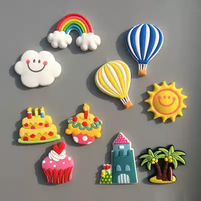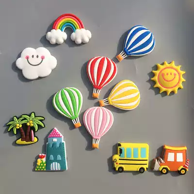 Cartoon cute hot air balloon rainbow clouds vehicle whiteboard stickers Early education soft glue soft magnetic refrigerator stickers magnet