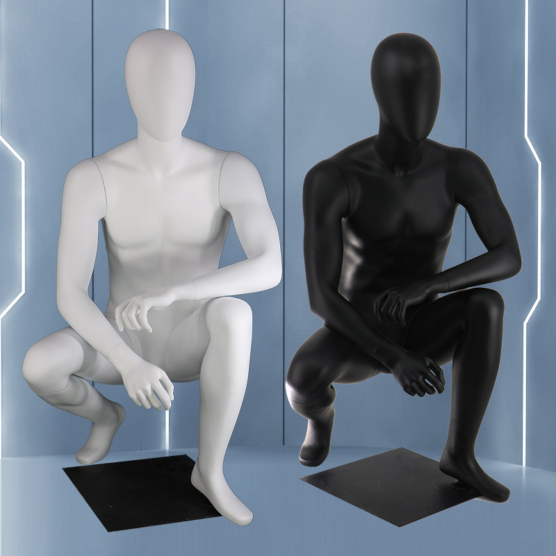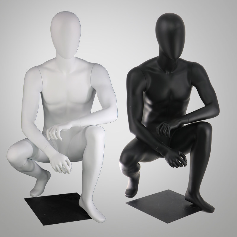 Clothing Shop Model Male Model Prop Whole Body Sitting Squatting Model Solid Fake People Bench Glass Fiber Shop Window Display