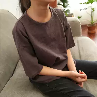 Summer new children's clothing Girls and boys pure cotton solid color short-sleeved T-shirt children's slub cotton wild washed T-shirt