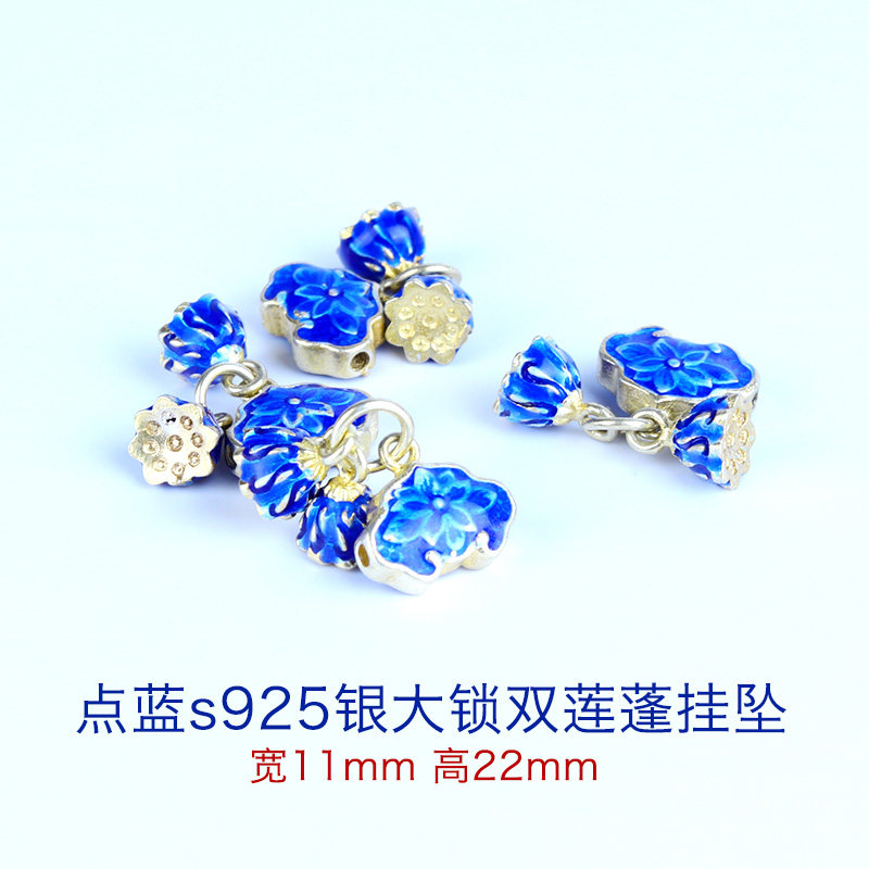 Dot blue flat Buddha head 10mm Dot blue round Buddha head 10mm Dot blue big double lotus lock pendant width 22mm high 11mm Dot blue elephant width 22 high 14 Dot blue bucket beads 8mm high