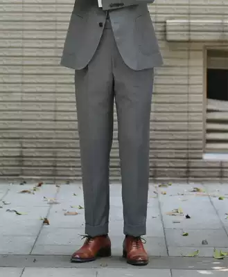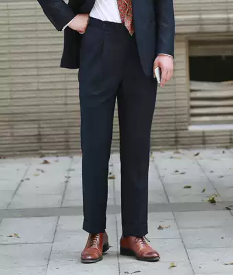 Spring and summer black Gray Tibetan worsted wool trousers men's high waist trousers Naples Paris buckle