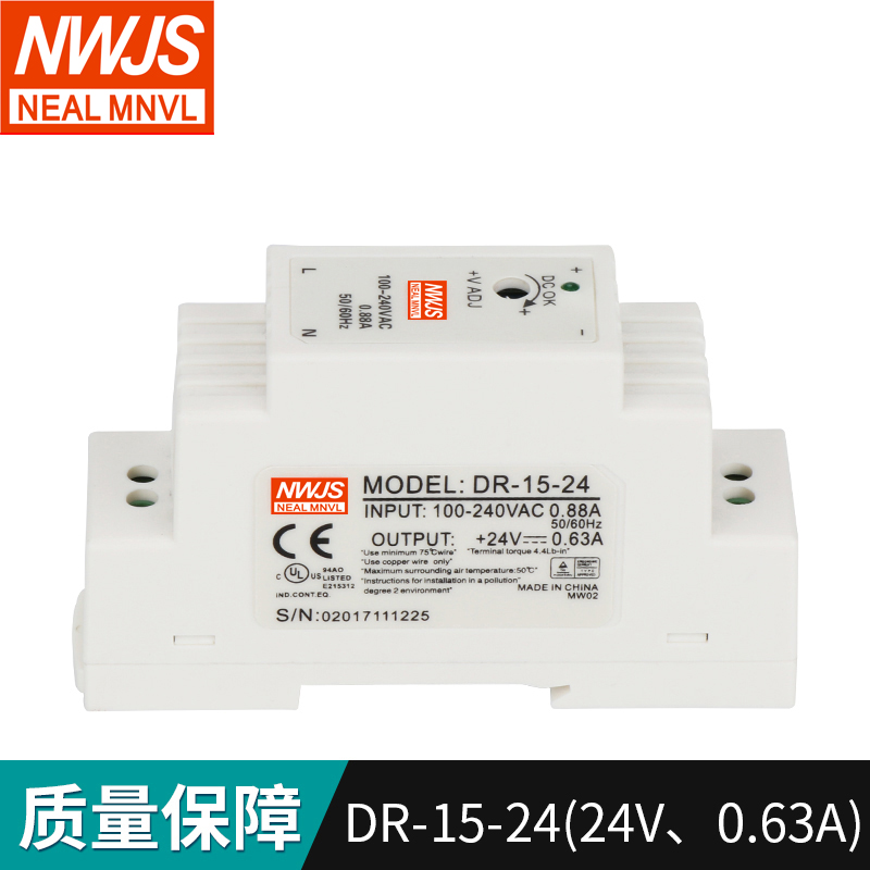 Minwei rail-style installation of small volume switching power DR-15 DR-15 -24V0 63A12V1 25A industrial power supply