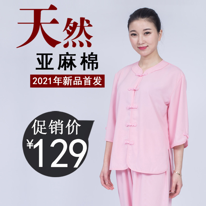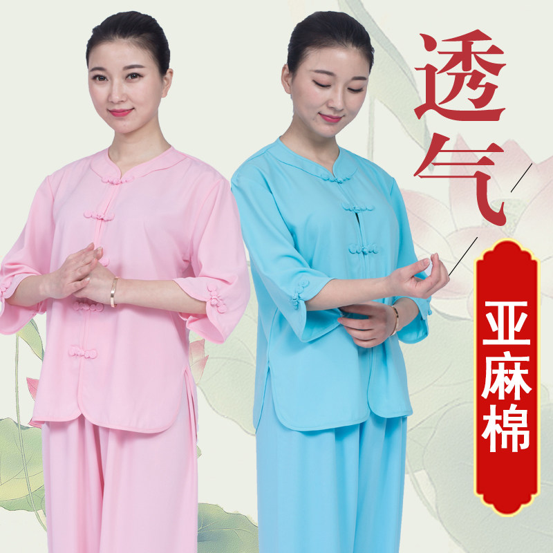 Small and Mountain Tai Chi Costume Women New Foreign Pie Short Sleeves Cotton Linen Taijiquan Style Taiji Costume Women's Summer
