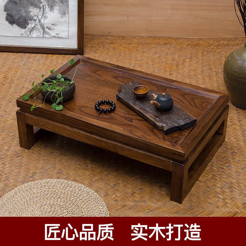 Elm Kang Kang table Low table Bay window Kung Fu small tea table Small tea table Small table Solid wood Chinese tatami tea table