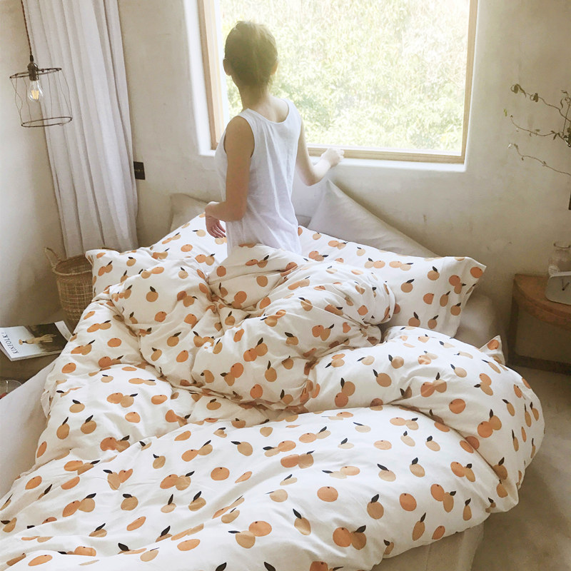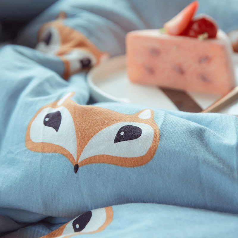 Naked Sleeping All-cotton Knit Cotton Sky Geranium Four Pieces of Cartoon Printed Daily Pure Cotton Quilt Cover Bed Linen Bed bedding