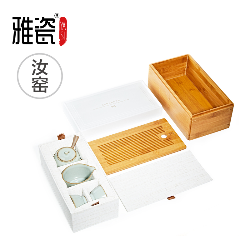 Elegant porcelain Ru Kiln Walker set Travel Kung Fu tea set One pot and two cups of Ru Porcelain portable tea set gift box