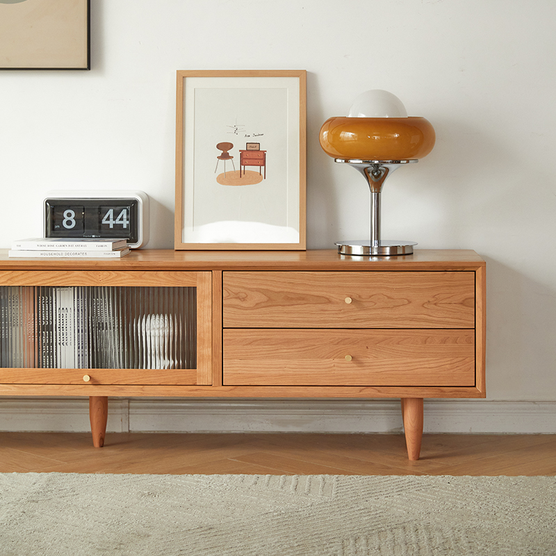 Nordic solid wood TV cabinet coffee table combination modern minimalist small apartment oak cherry wood TV cabinet living room furniture