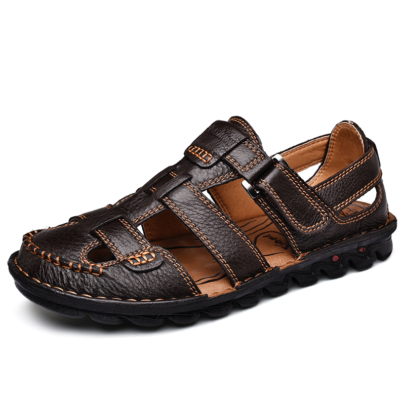 West Domain Camel Sandals Men Summer Genuine Leather Men's Baotou Beach Shoes Soft Bottom Non-slip Middle Aged Dad Casual Shoes