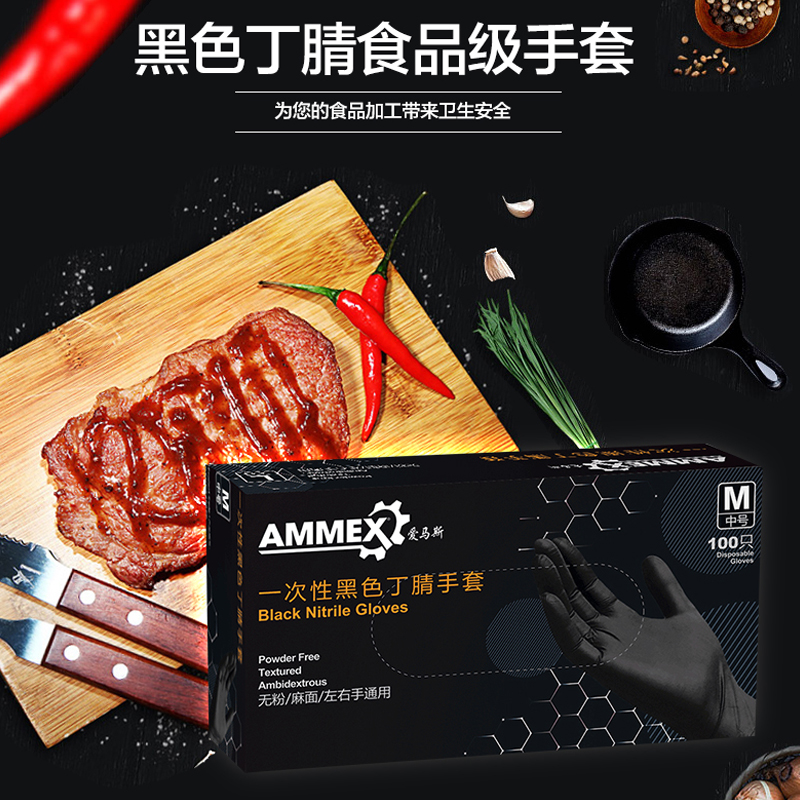 Love Mas Disposable Gloves Food Grade Catering Kitchen Black BLACK Laboratories Rubber Thicken durable Lauprotect