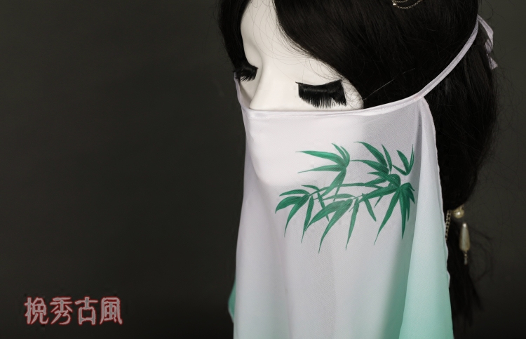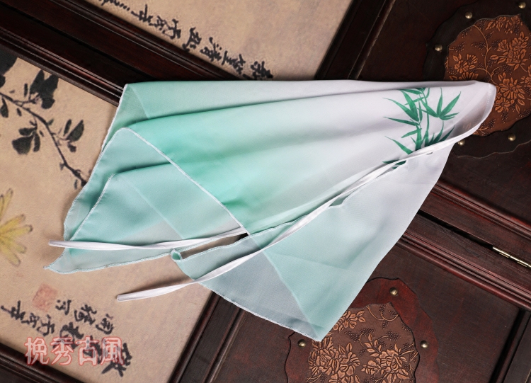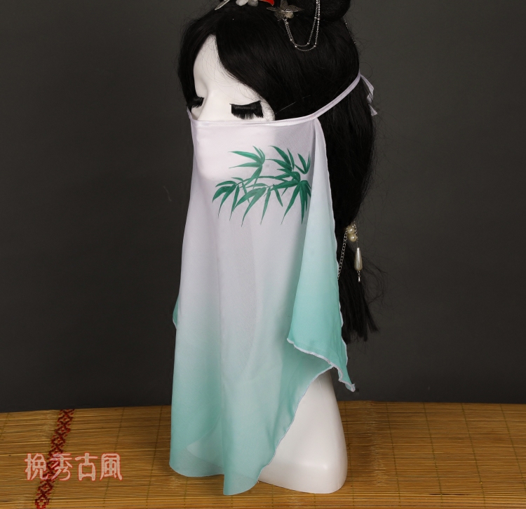 Wanxiu-Bamboo Antique Veil Digital Printing Chiffon Gradient Mint Green Fairy Elegant Hanfu Accessories Elegant