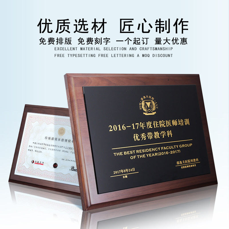 Hupeach Wood Solid Wood Medal Customized Crystal Medal Dealer Emeritus Authorization Certificate Lettering with a wooden board plaque