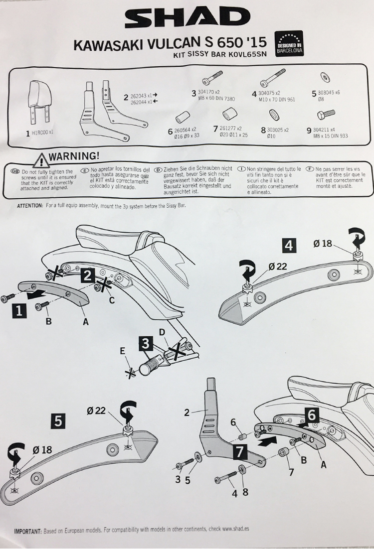 Kawasaki Vulcan S VN650 Small Fire God Original Dress Import SHAD Shad Backrest Back Cushion Bracket