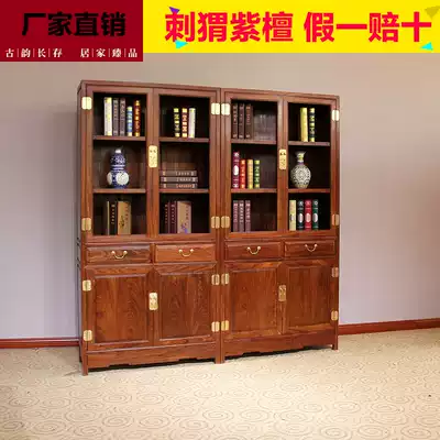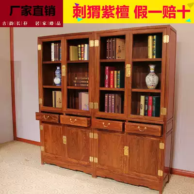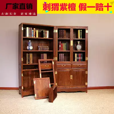 Mahogany bookcase plain bookcase Chinese classical solid wood carved bookcase Rosewood hedgehog rosewood display cabinet combination