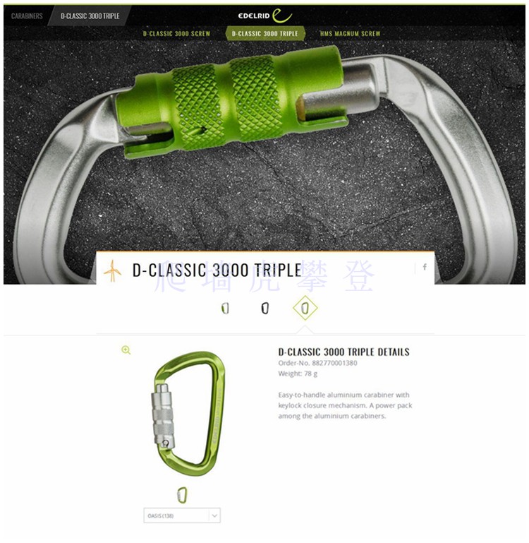 Promotion German EDELRID D-CLASSIC 3000 TRIPLE rock climbing rescue cave D-type automatic main lock